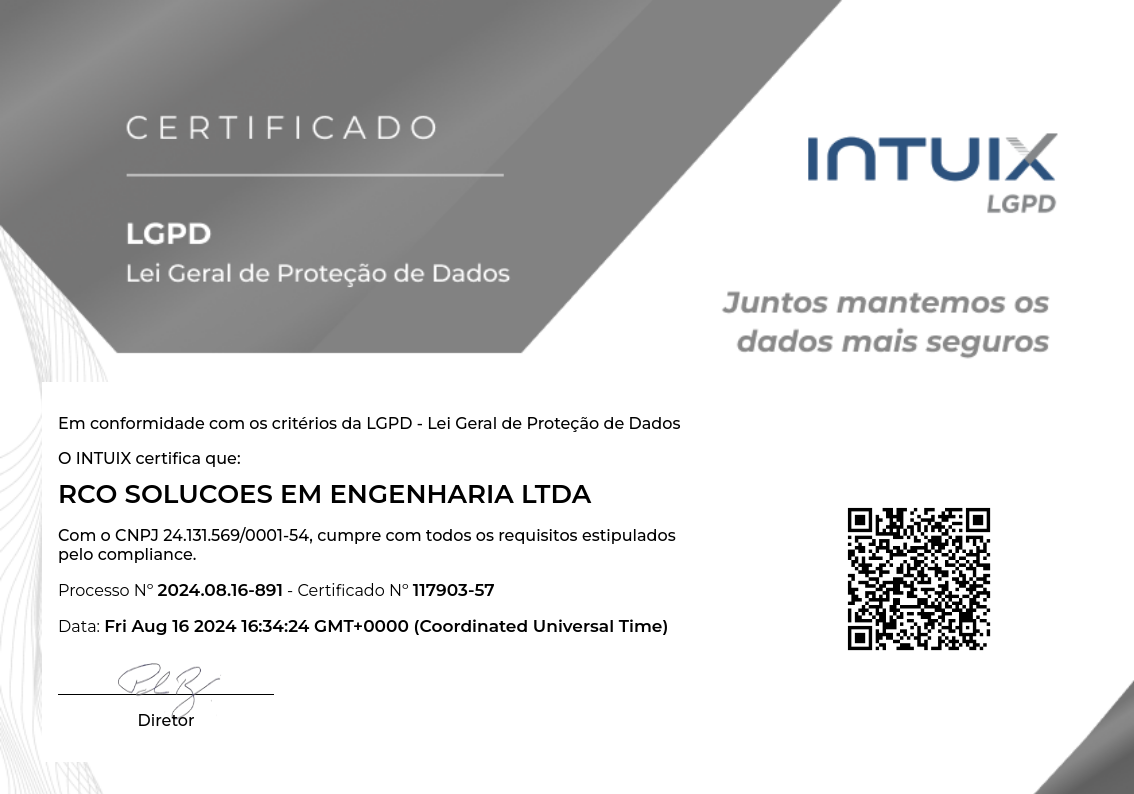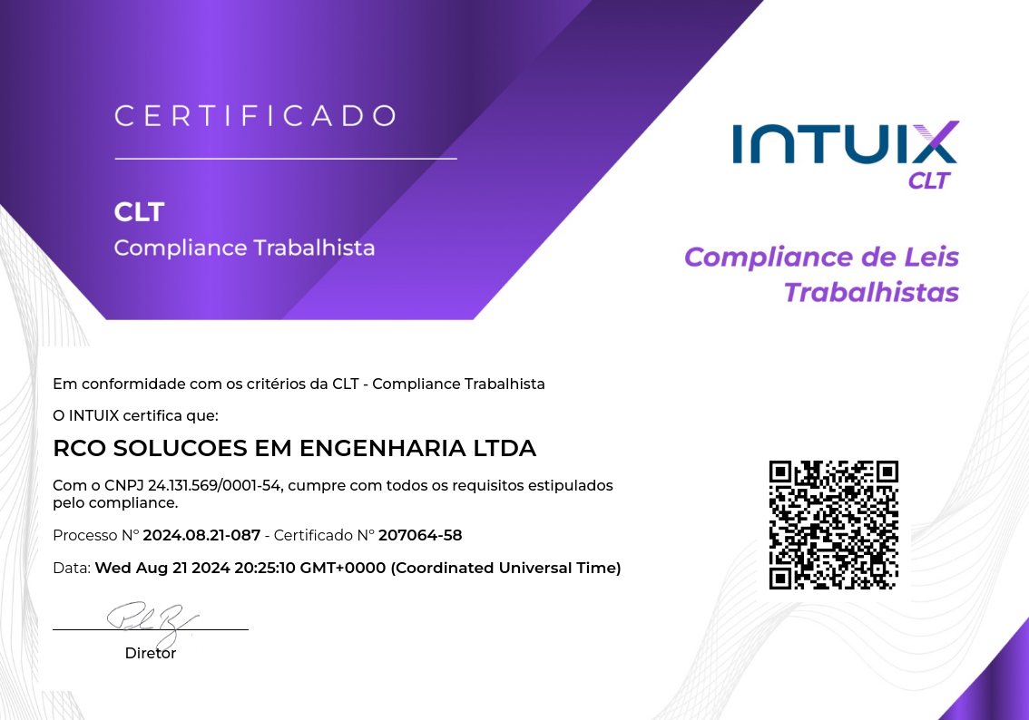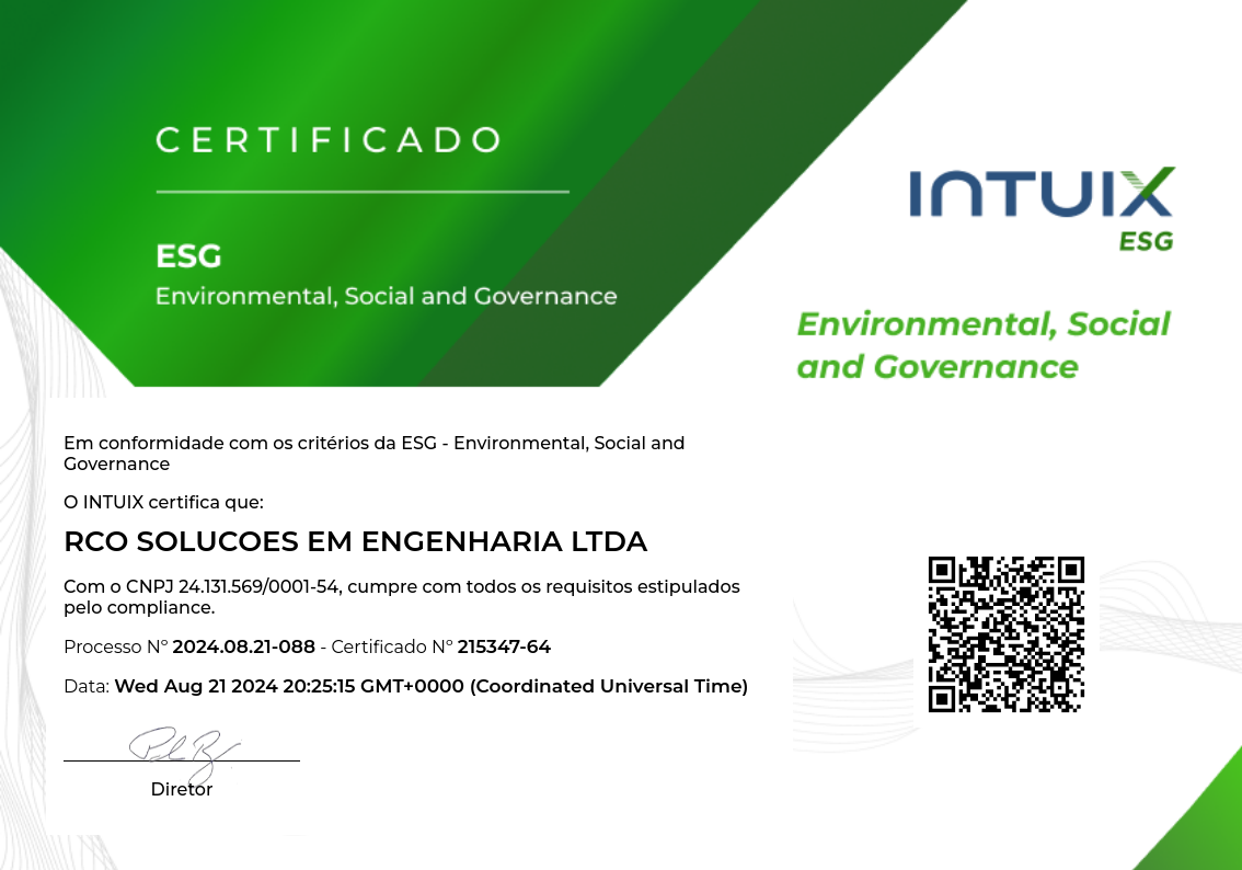 Na RCO Engenharia, a integridade, a transparência e a responsabilidade corporativa são pilares fundamentais do nosso trabalho. Nossos selos e certificações refletem esse compromisso e garantem que nossas práticas estejam alinhadas com os mais altos padrões do mercado.